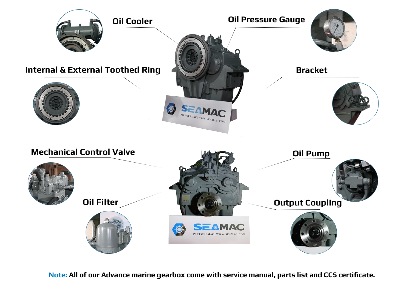 All of our Advance Pump Used Series Gearboxes can provide CCS classification certificate, some of series can provide international classifications with extra costs which mainly including French BV, British LR, American ABS, Japanese NK , Norway DNV-GL, Russia RS, South Korea KR, Italy RINA and other classification societies.